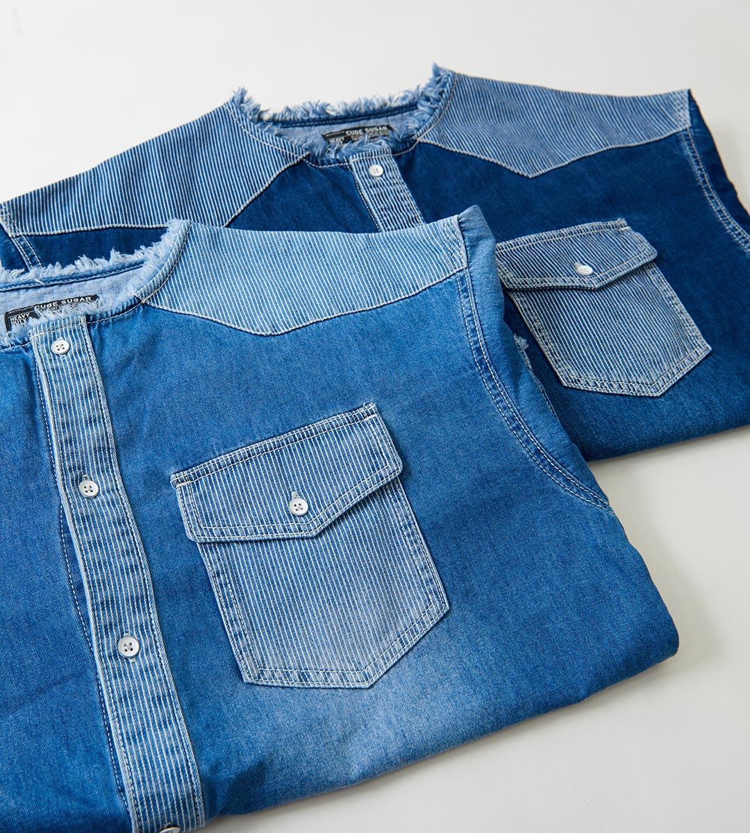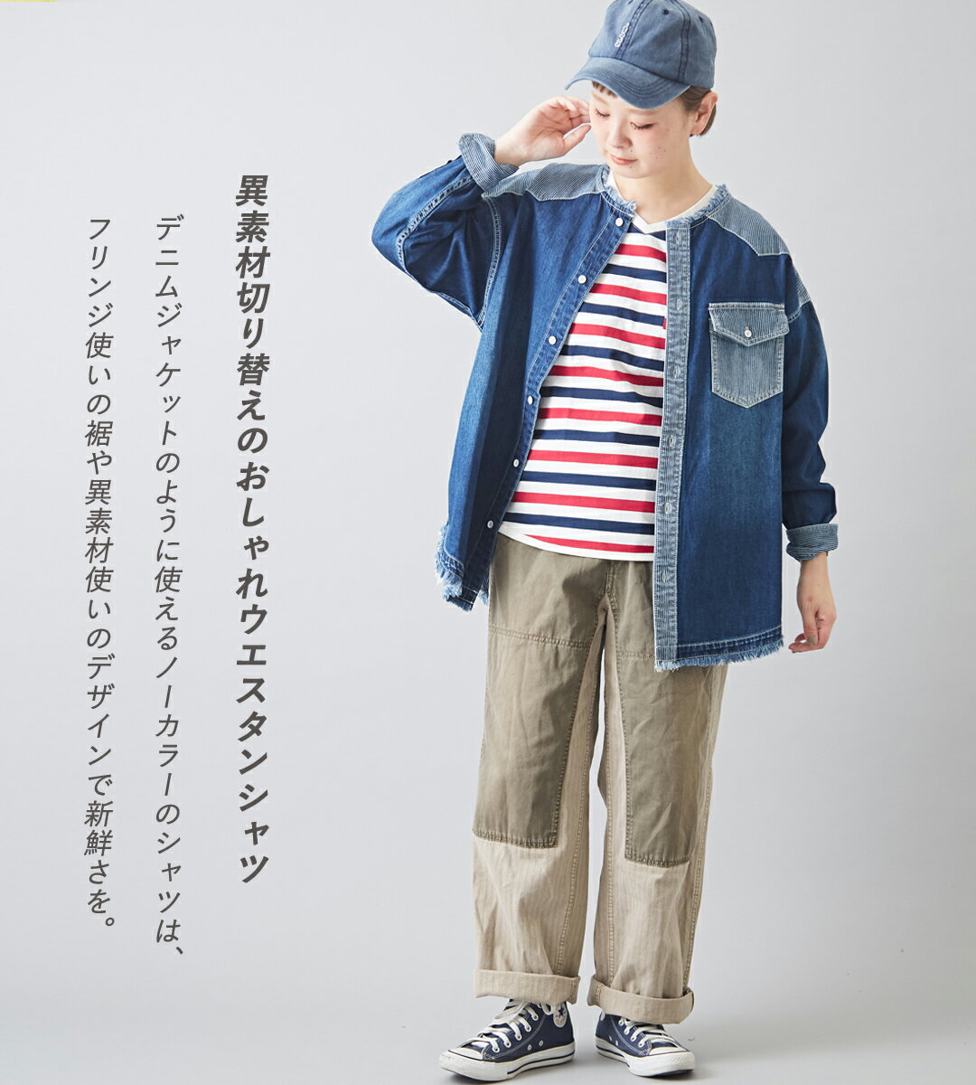異素材切り替えウエスタンシャツ サッと羽織れるライトアウターとして、 コーディネートにプラスワンしたい時に便利なデニムシャツ。